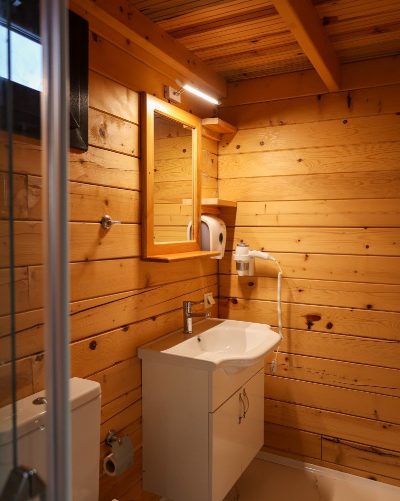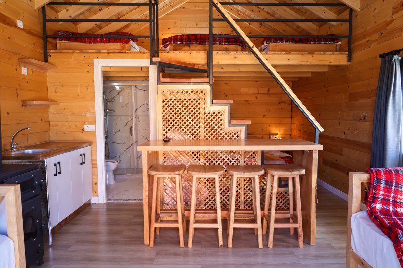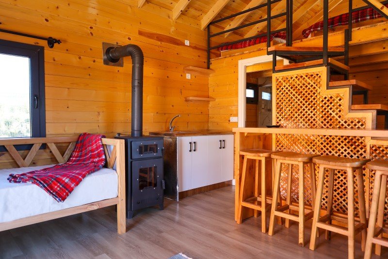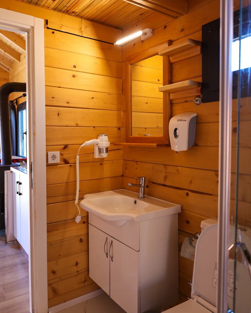 2 yada maximum 7 kişinin aynı anda konaklayabileçeği bungalow odaların hepsinde kendine ait banyo ve ısınma için pelet sobası bulunmaktadır.
